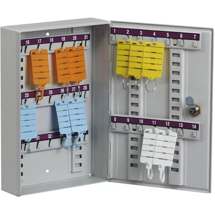 Armoire idéale pour stocker ou ranger les clés qui serves pas tous les jours, ou pour mettre les clés des voiture en réparations tous en securité grace à sa serrure qui ferme à clé. Cette armoire est solide grace à son corps et sa porte en acier robuste. Elle peut s’adapter trés facilemnt à la taille des clés grâce à ses rails ajustables verticalement. LKa sécurité des 35 clés pouvant etre mise dedans sont assurer avec le véroullage via le cylindre de sécurité et les deux clés fournie avec. Caractéristiques : Capacité : 35 clés Matière : acier Dimension : 300 x 200 x 60 mm Poid : 2.07 Kg