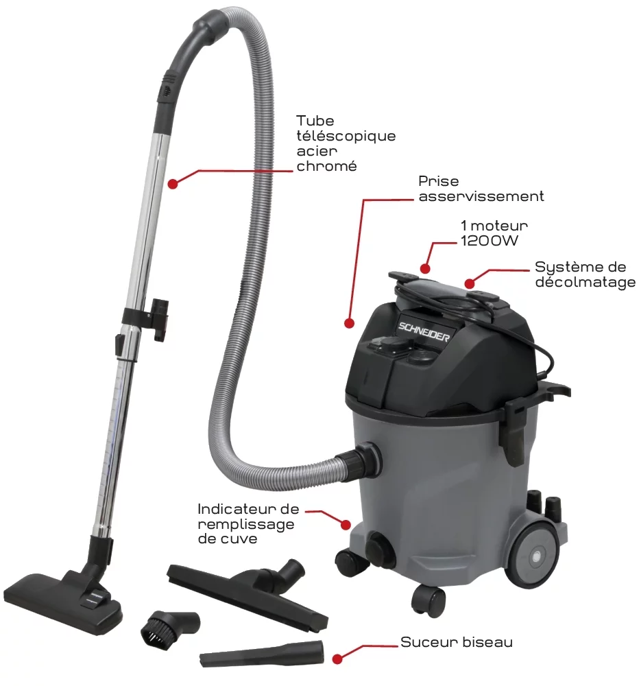 Aspirateur Eau et Poussière 20L – SCHNEIDER : Puissant, pratique et polyvalent