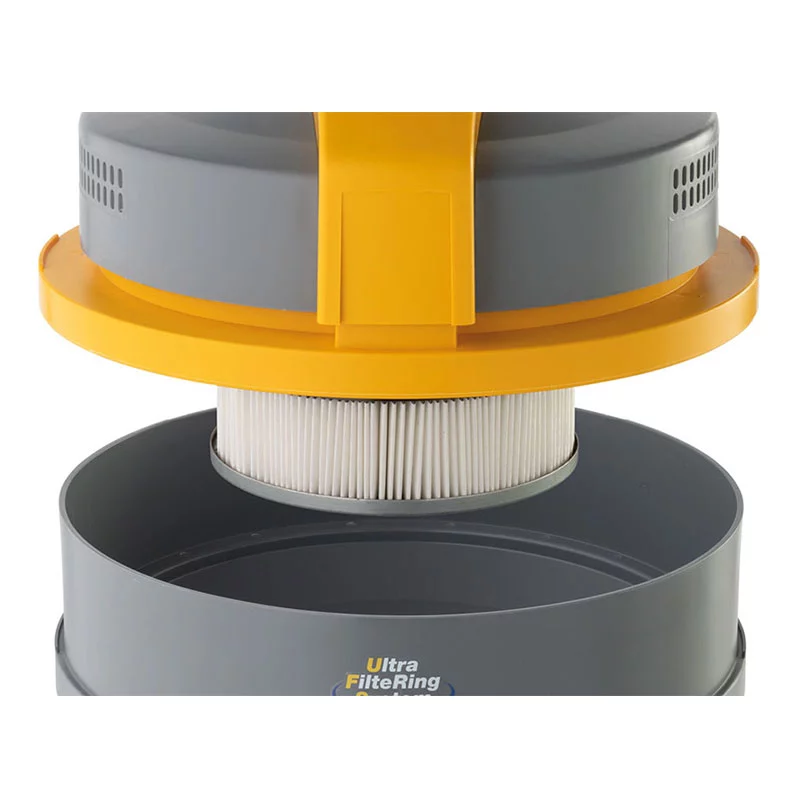 Aspirateur sec/humide doté d’un moteur nouvelle génération puissant et à haute efficacité. Modèle équipé du nouveau système de filtration UFS (Ultra FilteRing System) qui, grâce à la bague intercalaire spéciale en polypropylène, maintient le filtre à cartouche (classe M) toujours installé, garantissant ainsi les meilleures performances d’aspiration et une protection maximale du moteur (même en cas d’utilisation incorrecte par l’opérateur).