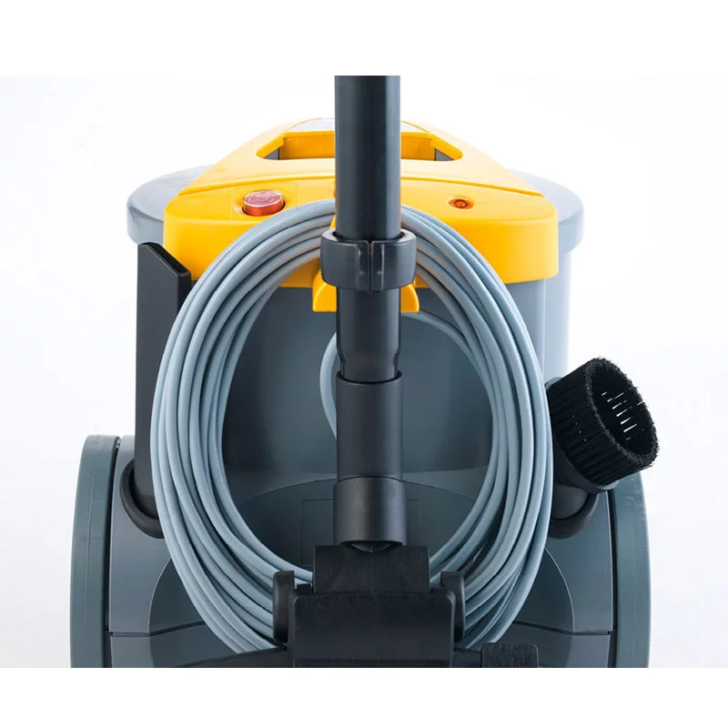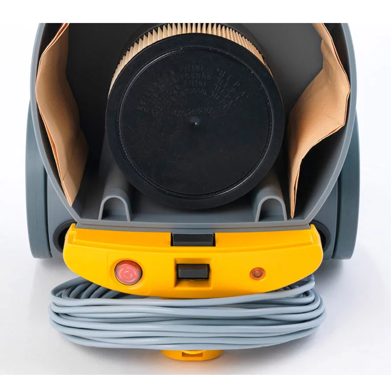 Aspirateur puissant et polyvalent doté d’un conteneur et de filtres de grande capacité. Équipé d’un tube télescopique et câble amovible, d’un filtre évacuation d’air, d’un témoin sac à poussière plein et d’un amortisseur anti-choc. Bonne maniabilité garantie par les roues avant pivotantes et les roues arrière fixes de grand diamètre.