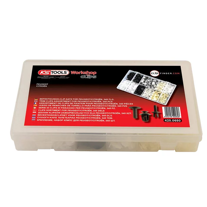 Coffret d’asortiment d’agrafes pour Volvo de marque KsTools qui est fabriquant d’outils de qualité proféssionnel pour les métiers de l’industrie, oeuvre du bâtiment, l’automobile depuis 25 ans. caractéristiques : – Poids: 358 g – Nombre d’outils: 350