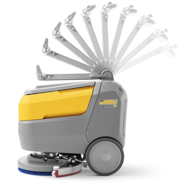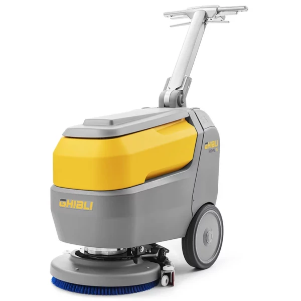 Autolaveuse professionnelle GHIBLI à batterie, performante et fiable pour, des résultats de nettoyage supérieurs. compacte idéale pour le nettoyage des petites et moyennes surfaces telles que les magasins, les laboratoires, les bureaux et les restaurants. Le manche inclinable en aluminium, robuste et extrêmement maniable, permet une manœuvrabilité maximale dans les espaces restreints.