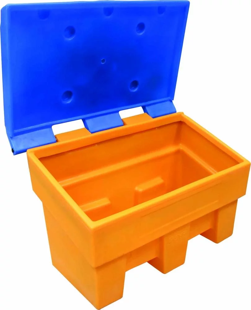 Bac à sel ou sable 300 Litres avec couvercle et passages fourches, Passage de fourche (2 côtés) pour transpalette.