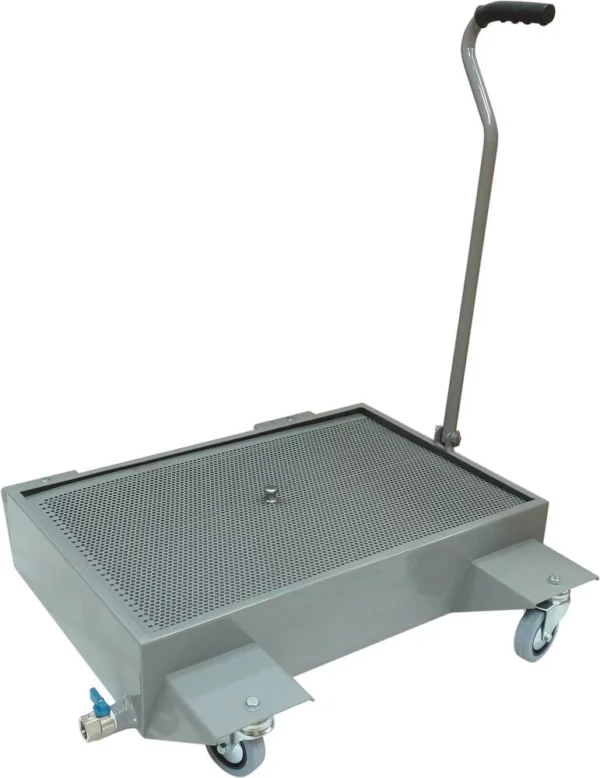 Bac de vidange en acier pour huiles et produits chimiques DRAKKAR. Monté sur 4 roues pivotantes.