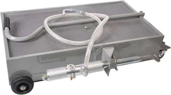 Bac de récupération d’huile usagée DRAKKAR. Ce bac de vidange est équipé d’une pompe pneumatique pour la vidange.