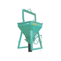 Benne à béton de forme ronde à déversement latéral. Elle est équipée de prises fourreaux.