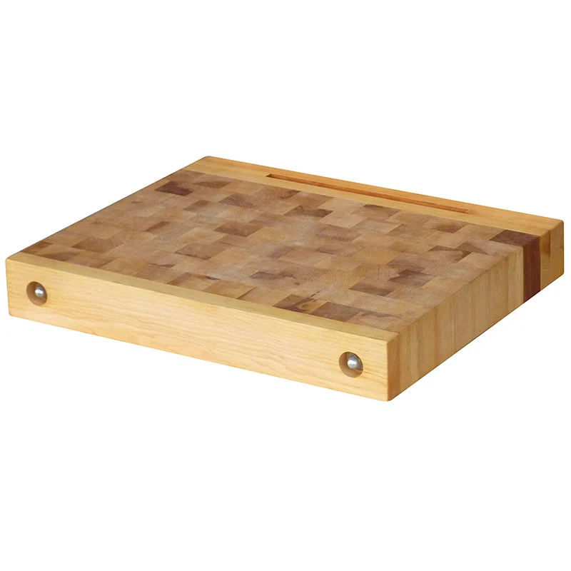 Sa conception en bois « de bout » offre une surface de travail robuste, idéale pour les découpes lourdes ou délicates.