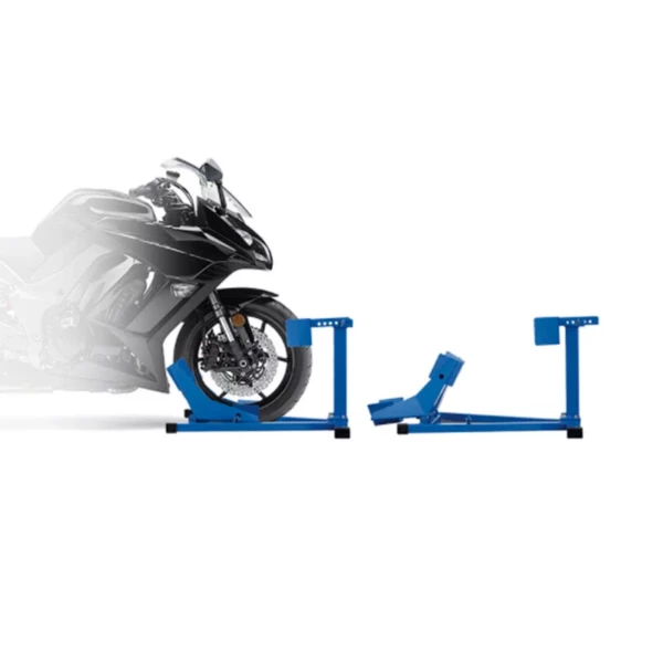 Ainsi la structure en acier est solide et résistante. Elle supporte les motos les plus lourdes. Une fois la roue engagée, la moto tient toute seule. Vous gagnez du temps et travaillez en toute sécurité.