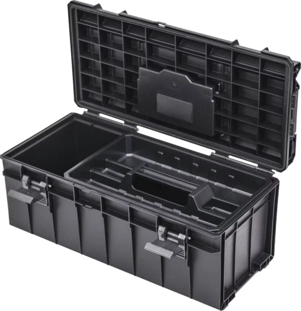 Le plateau porte-outils facilite l’organisation interne, tandis que le système de clips en PVC permet d’attacher facilement plusieurs modules entre eux. Cette fonctionnalité est particulièrement utile pour créer un système de rangement modulaire, avec des modules connectables de même taille.