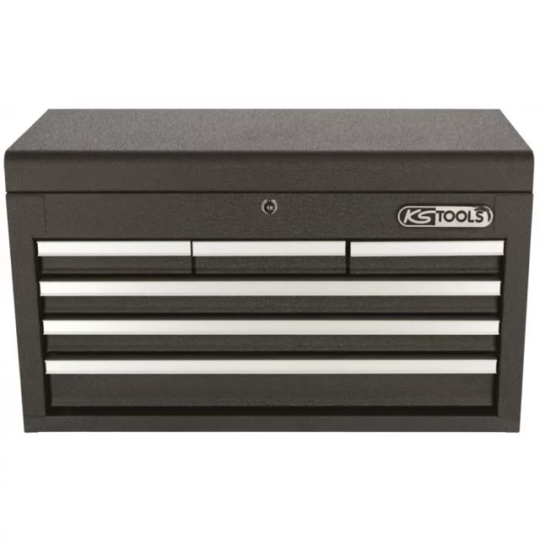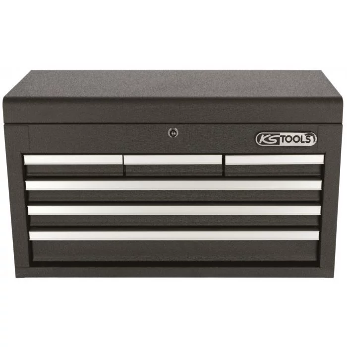 Caisse à outils 6 tiroirs en métal avec compartiment supérieur, tiroirs montés sur glissières à billes, système de fermeture par serrure à clés (livré avec 2 clés).