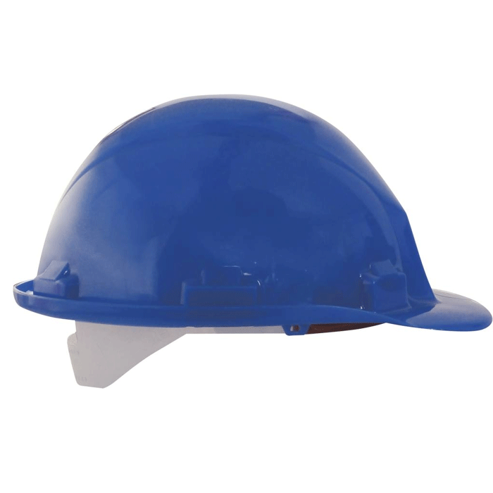 Casque de chantier pour protection électrique  de couleur bleu avec rainuer universelle de 30 mm pour le rangement d’accessoires et bande anti-sueur. Reglabe de 52 cm à 60 cm