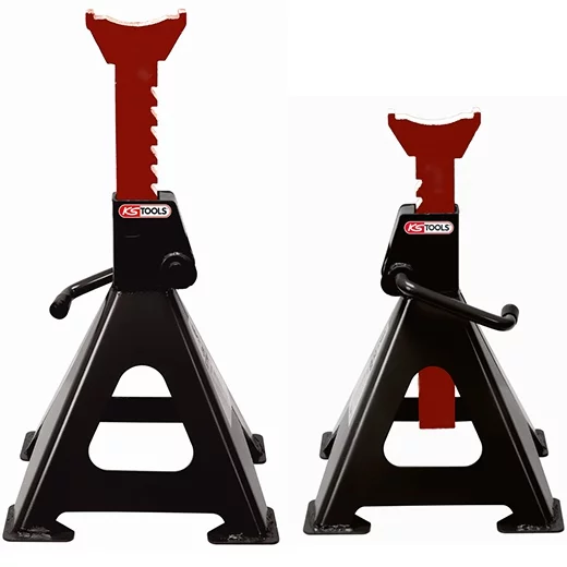 Chandelles à crémaillères KSTOOLS® de capacité 6 tonnes. Ces chandelles sont vendues par paire et destinées au levage de véhicules VL.