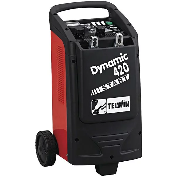 Chargeur-démarreur de batterie professionnel TELWIN. Chargeur démarreur monté sur roues. Conçu pour la charge et le démarrage de tous types de voitures, fourgons, camions légers, tracteurs et camions. Garantie 1 an. Tension du réseau: 50/60 Hz – 230 V Puissance absorbée (charge/démarrage): 1.6/10 kW Tension de charge et de démarrage: 12 – 24V Courant de charge: 75 A Courant conventionnel (EN60335-2-29): 50 A Courant de pic de démarrage: 400 A cc max Capacité nominale de référence Ah 15h (min/max): 20 / 1000 4 réglages de courant de charge Protection contre les surcharges et inversions de polarité Sélecteur pour charge normale ou rapide Affichage du courant de charge et de démarrage Temporisateur pour la charge rapide Dimensions: 30.5 x 36 x 63 mm Poids: 20 kg