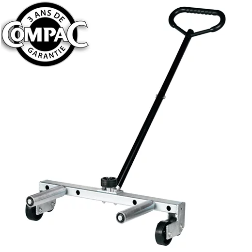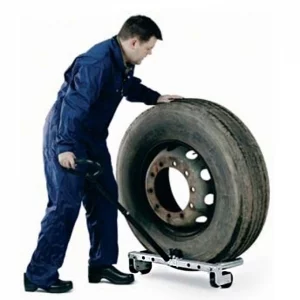 Chariot porte roues, montage et démontage de roues de bus et P.L. Suivant les différentes tailles de roues, trois positions possibles pour les rouleaux, chariot avec béquille de stockage.