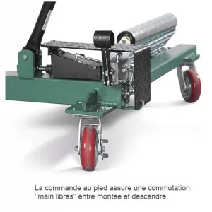 Chariot porte roues COMPAC® pour le montage et démontage de roues pour les poids lourds, les machines agricoles et engins de génie civil. Ce chariot est équipé d’un système hydraulique à double action assurant une descente sûre et contrôlée, d’un bras de soutien pour maintenir la roue droite, pour une bonne stabilité pendant la manipulation, d’un bras de soutien pour maintenir la roue droite et pour une bonne stabilité pendant la manipulation et de 2 x 4 gros rouleaux pour manipulations de roues présentant des sculptures de pneus profondes.
