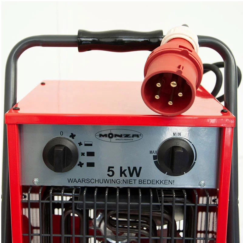 Boîtier en métal durable, conçu pour résister aux conditions industrielles. La puissance de 5 kW permet de chauffer efficacement de grands volumes d’air en peu de temps.