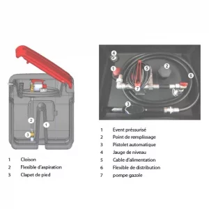 Le pistolet automatique arrête le débit dès que le réservoir est plein. Vous évitez les débordements. Le flexible de distribution est long et souple, pour un usage confortable. Ainsi un couvercle sécurisé protège l’ensemble du système. De plus, la citerne est équipée d’un clapet anti-retour et d’un filtre à gasoil pour préserver vos machines.