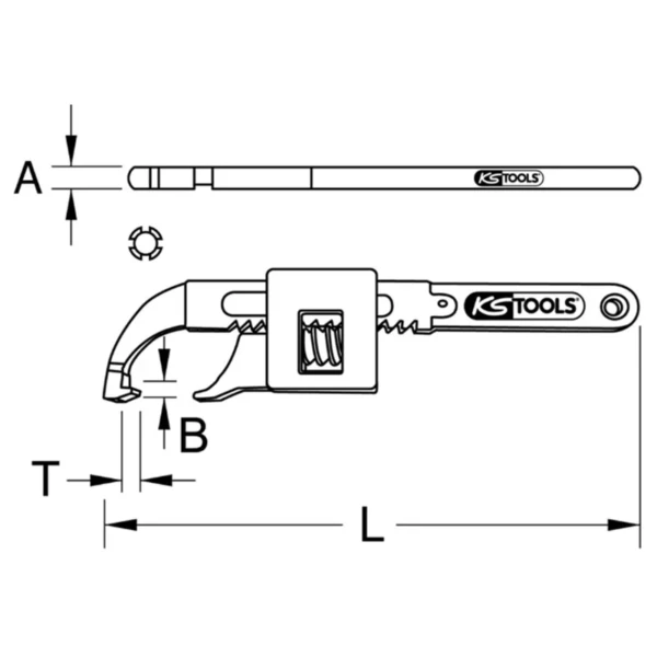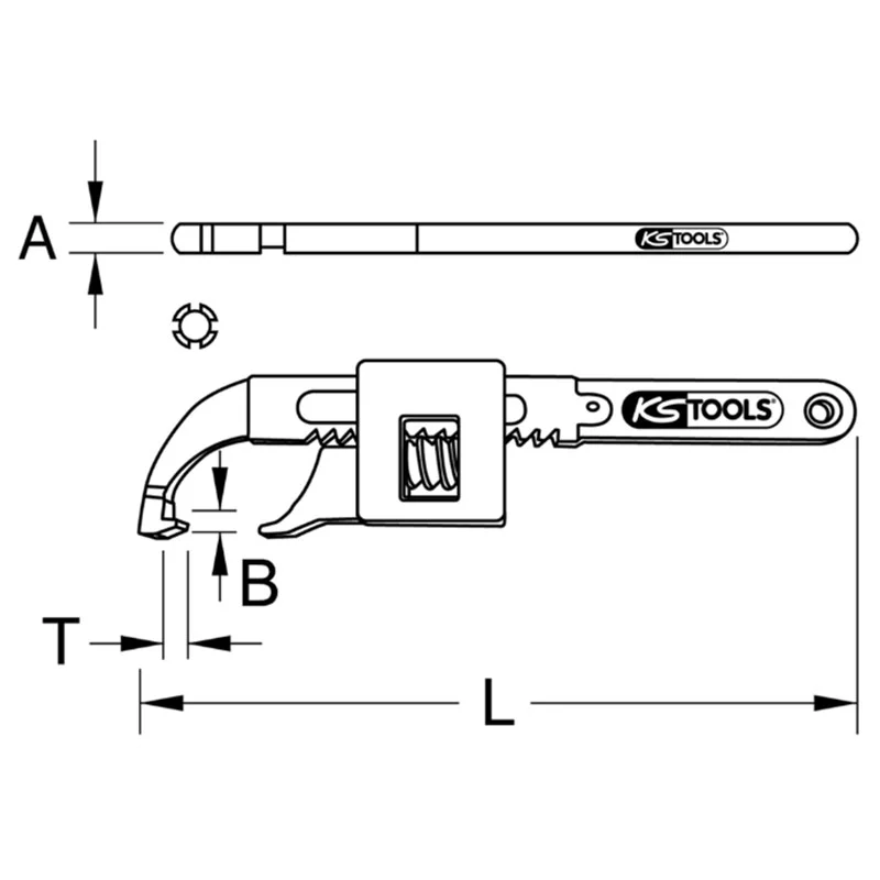 Clé à ergot à cremaillère de 20 à 100 mm KS TOOLS. Parfaite pour les écrous à encoches latérales. Cette clé est fabriqué en acier chrome vanadium finition mate.