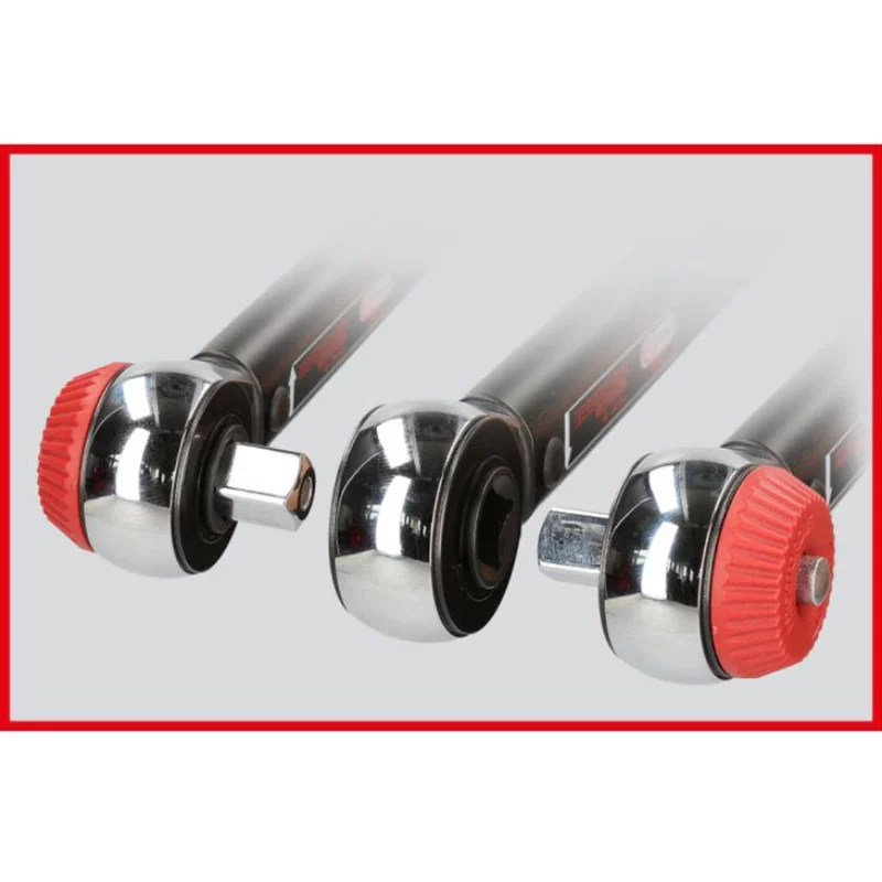 Clé dynamométrique avec une précision optimale de déclenchement : précision ±3 % du couple réglé et livré avec certificat suivant la norme DIN EN ISO 6789. Cette clé peut être utilisée pour le serrage contrôlé à droite et à gauche qui possède une fenêtre de lecture loupe avec graduation en Nm et lbf.ft pour un réglage précis. Elle est également muni d’une poignée ergonomique bi matière. Le changement du sens de serrage est effectué en faisant traverser le carré d’entraînement. Réglage et verrouillage du couple en tirant ou appuyant sur le bouton situé en bout de poignée.