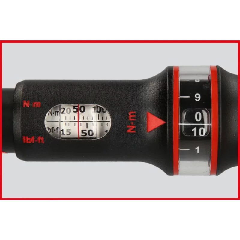 Clé dynamométrique 1 à 25 Nm à emmanchement 9x12mm KSTOOLS®, confort de prise en main avec sa poignée ergonomique bi-matière, précision ± 3 % de la valeur réglée, graduation format loupe, déclenchement sensitif et auditif, utilisation dans les ambiances bruyantes et/ou sans visibilité, réglage et verrouillage total du couple de serrage à l’extrémité de la clé, vernier de réglage extrêmement précis. Utilisation garantie pour un minimum de 5000 serrages. Testée et certifiée par la norme DIN EN ISO 6789.