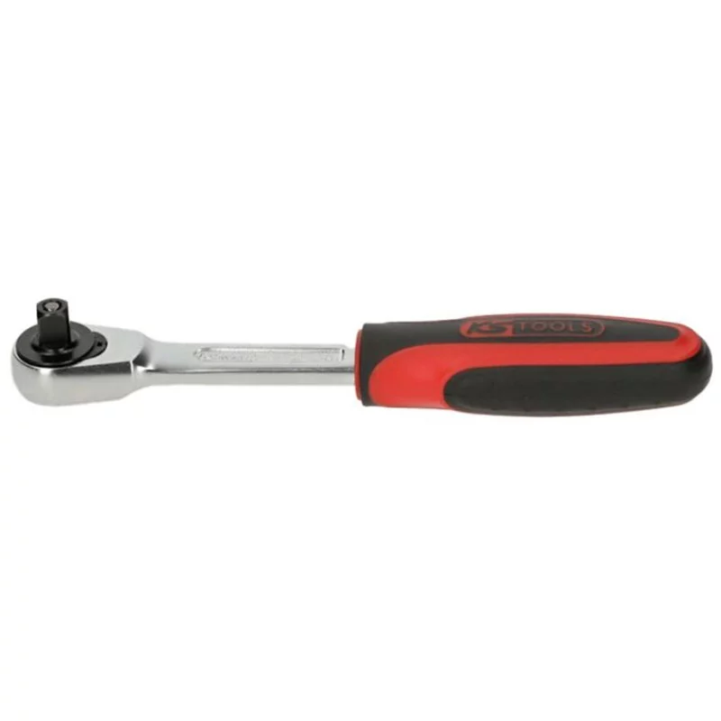 Cliquet réversible KS TOOLS. Équipé d’un système d’éjection des douilles, d’une poignée bi-matière ergonomique, d’une finition chromée satinée.