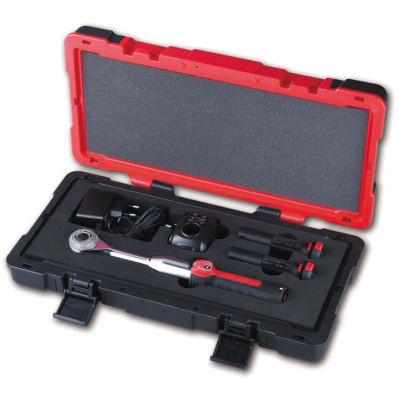 Cliquet sur batterie, livré dans un coffret bi-matière avec 2 batteries, 1 chargeur et lot d’inserts magnétiques pour douilles. Ce cliquet vous permet un serrage énergisée, rapide, sans effort et de finalisé votre serrage manuellement. idéal pour travaillé dans les endroits exigus et les travaux en série.