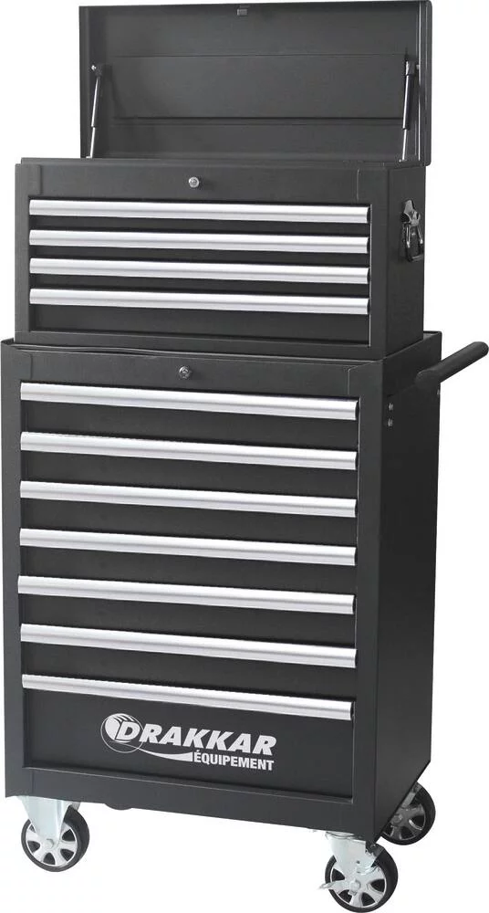 En résumé, le coffre de servante Drakkar combine robustesse, praticité et sécurité. Son design compact s’adapte parfaitement aux ateliers et garages professionnels. Enfin, il facilite le rangement, le transport et la protection de vos outils. Un choix idéal pour tous les artisans exigeants.