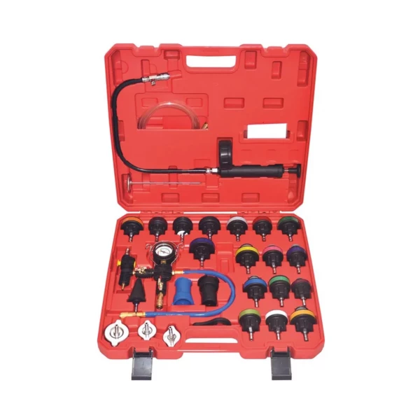 Cette mallette complète permet de contrôler et remplir le circuit de refroidissement des véhicules, compatible avec la majorité des marques de voiture.