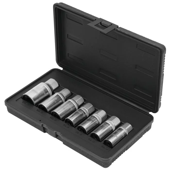 Chaque pièce est fabriquée en acier Chrome Vanadium extra-fin avec une finition chromée brillante. Cela assure une grande durabilité et une résistance optimale à l’usure. Le coffret comprend des dégoujonneuses adaptées aux filetages M5 à M14, couvrant une large gamme d’applications.