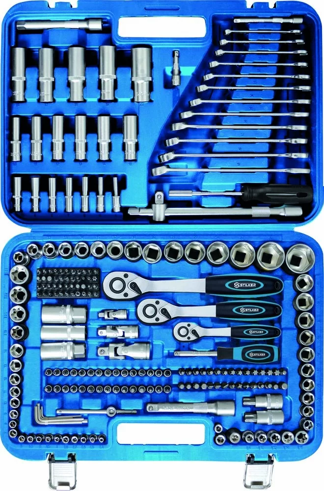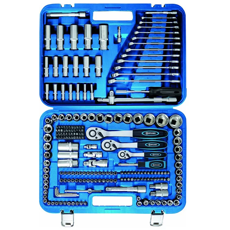 Coffret de 219 pièces de douilles STILKER. Ce coffret est idéal pour les bricoleurs, les mécaniciens et les professionnels.
