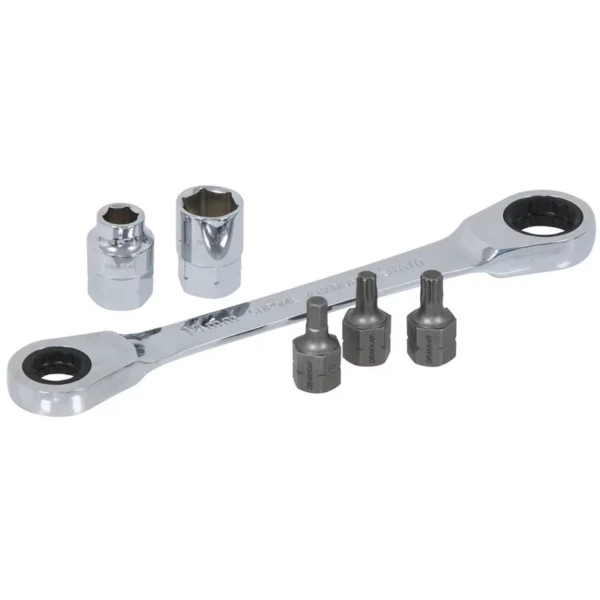 – 1 pc : Clé à œil à cliquet (14 mm – 19 mm)