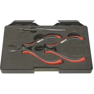 Coffret de pinces et tournevis munies d’un manche ergonomique pour une utilisation confortable. Les pinces sont équipés d’un double ressort pour une ouverture automatique. Poignées bi-matières. Garantie à vie ! (dans des conditions normales d’utilisations). Marque : KSTOOLS 1 x Pince à bec demi-rond droit 130 mm 1 x Pince coupante diagonale 120 mm 1 x Pince brucelle inox 145 mm 1 x Tournevis PHILLIPS PH 00 x 2,0 mm Longueur 50 mm 1 x Tournevis PHILLIPS PH 0 x 2,4 mm Longueur 50 mm 1 x Tournevis PHILLIPS PH 1 x 3,5 mm Longueur 50 mm 1 x Tournevis Fente 1,4 mm Longueur 50 mm 1 x Tournevis Fente 2,0 mm Longueur 50 mm 1 x Tournevis Fente 2,4 mm Longueur 50 mm 1 x Tournevis Fente 3,0 mm Longueur 50 mm Poids: 0,39 kg