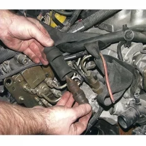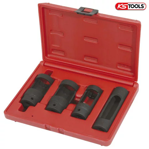 Jeu de douilles d’éxtraction 1/2’’ pour le montage et le démontage des injecteurs, carré d’entrainement intérieur selon DIN 3120 / ISO 1174 avec encoche pour verrouillage par bille. Garantie à vie ! (dans des conditions normales d’utilisation). A: 1 x Douille injecteur 1/2’’ (1 découpe) Chrysler Voyager, Jeep Cherokee, Opel Frontera VM 41 B Clé 28 – 12 pans, L. 78 mm Rover, Landrover DIscovery Motor VM 2,5L TD B: 1 x Douille injecteur 1/2’’ (1 découpe) Fiat, Ford, VW et Mercedes Clé 27 – 12 pans, L. 78 mm C: 1 x Douille injecteur 1/2’’ (2 découpes) Ford Maverick 2,7L TD Clé 22 – 12 pans, L. 80 mm Nissan Terrano TD 2,5L + 2,7L, Opel Corsa 1,5D/1,7TD, Isuzu D: 1 x Douille injecteur 1/2’’ (1 découpe) Clé 22 – 6 pans, L. 110 mm Poids : 1.10 kg