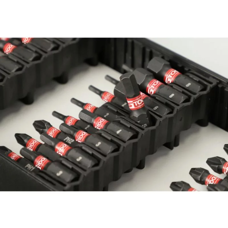 Que vous travailliez dans l’automobile, la construction ou l’industrie. Ces embouts vous assurent une fiabilité et une durabilité à toute épreuve. Coffret embouts de vissage à chocs 1/4″ KSTOOLS