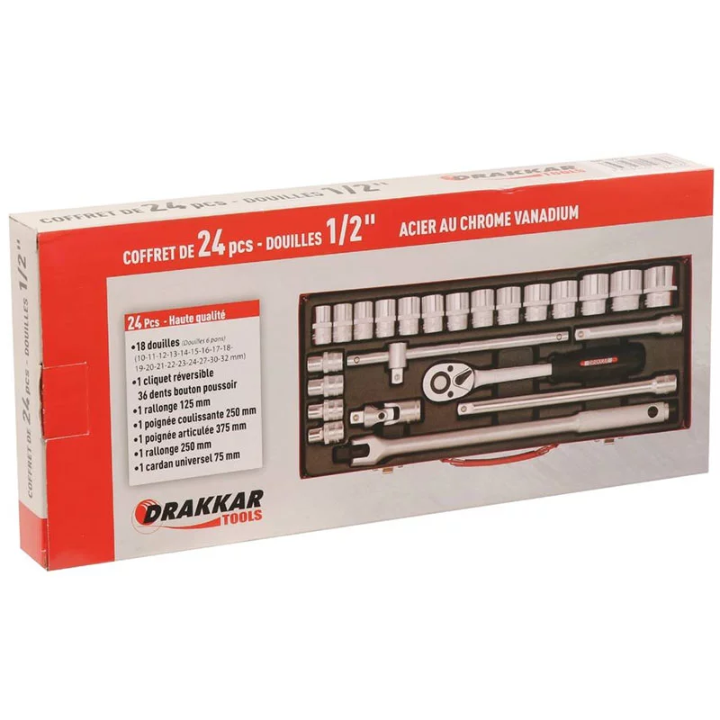 Coffret métallique de douilles composée 6 pans de 24 pièces DRAKKAR.