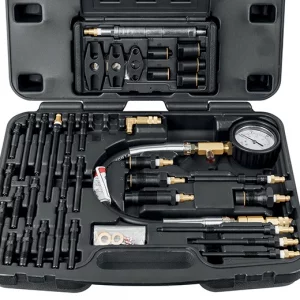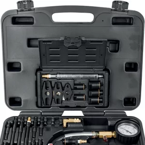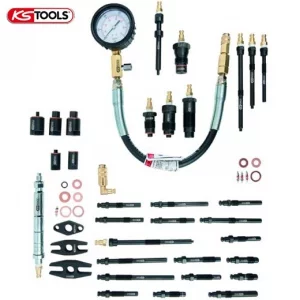Coffret d’outils pour repérer l’usure et les problèmes d’étanchéité des segments, permet le contrôle avec une pression jusqu’à 70 bars (1000 PSI). Raccords rapides en version droite et coudée, coffret de rangement. Utilisation : Alfa Romeo, BMW, Chrysler, Daewoo, Fiat, Ford, Hyundai, Isuzu, Land Rover, Mazda, Mercedes, Mitsubishi, Nissan, Opel, PSA, Renault, Saab, Suzuki, Toyota, VAG,Vauxhall, Volvo… Composition coffret : – Manomètre avec flexible, 0-100 psi, Ø 70 mm – Adaptateur bougies de préchauffage, M12x1,25 avec filetage extérieur, L. 47 mm – Adaptateur bougies de préchauffage, M12x1,25 avec filetage extérieur, L. 55 mm – Adaptateur bougies de préchauffage, M12x1,25 avec filetage extérieur, L. 87 mm – Adaptateur injecteurs, M10x1,25 avec filetage extérieur, L. 70 mm – Adaptateur injecteurs, M10x1,25 avec filetage extérieur, L. 57 mm – Adaptateur injecteurs, M10x1,25 avec filetage extérieur, L. 70 mm – Adaptateur injecteurs, M10x1,25 avec filetage extérieur, L. 82 mm – Adaptateur injecteurs, M10x1,25 avec filetage extérieur, L. 170 mm – Adaptateur bougies de préchauffage, M10x1,25 avec filetage extérieur, L. 120 mm – Adaptateur injecteurs, M10x1,25 avec filetage extérieur, L. 132 mm – Adaptateur bougies de préchauffage, M10x1,25 avec filetage extérieur, L. 70 mm – Adaptateur bougies de préchauffage, M10x1,0 avec filetage extérieur, L. 83 mm – Adaptateur bougies de préchauffage, M10x1,0 avec filetage extérieur, L. 74 mm – Adaptateur bougies de préchauffage, M10x1,0 avec filetage extérieur, L. 75 mm – Adaptateur bougies de préchauffage, M10x1,0 avec filetage extérieur, L. 99 mm – Adaptateur bougies de préchauffage, M10x1,0 avec filetage extérieur, L. 108 mm – Adaptateur bougies de préchauffage, M10x1,0 avec filetage extérieur, L. 75 mm – Adaptateur bougies de préchauffage, M10x1,0 avec filetage extérieur, L. 135 mm – Adaptateur bougies de préchauffage, M10x1,0 avec filetage extérieur, L. 175 mm – Adaptateur bougies de préchauffage, M8x1,0 avec filetage extérieur, L. 120 mm – Adaptateur injecteurs, L. 133 mm – Adaptateur injecteurs, M22x1,5, L. 92 mm – Adaptateur injecteurs, M24x1,5, L. 80 mm – Adaptateur injecteurs, M20x1,5, L. 65 mm – Adaptateur injecteurs, M24x2,0, L. 72 mm – Adaptateur pour buse avec joint, Ø 14 mm – Adaptateur pour buse avec joint, Ø 6 mm – Adaptateur pour buse avec joint, Ø 17 mm – Adaptateur pour buse avec joint, Ø 14 mm – Adaptateur pour buse avec joint, Ø 7 mm – Tube de pression – Grande passerelle – Passerelle moyenne – Petite passerelle – Equerre – Poids : 4,22 kg
