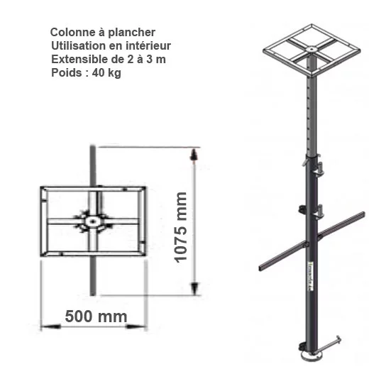 Colonne à plancher utilisable en intérieur extérieur extensible de 2 à 3 mètres. Pour treuil HAEMMERLIN 350 kg.