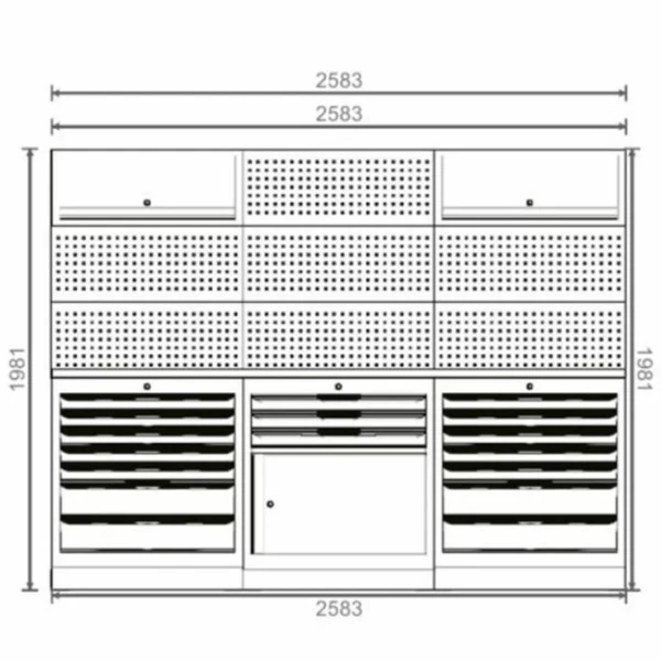 Grâce à sa structure en acier, ce meuble d’atelier est stable et durable. Il supporte une utilisation quotidienne, même en environnement intensif. Composition de meubles d’atelier SRM 2.6 M KSTOOLS