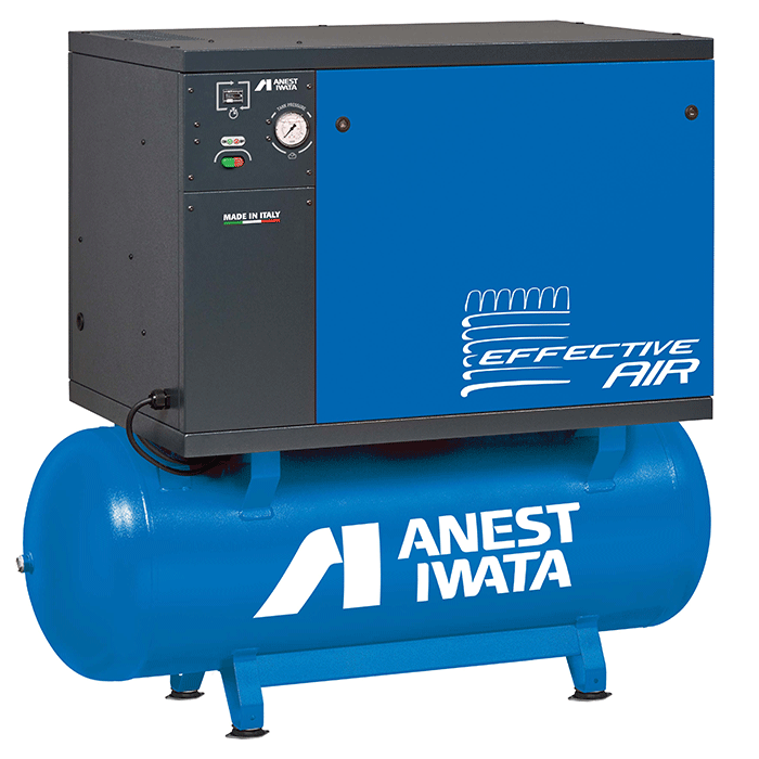 Compresseur à piston insonorisés ANEST IWATA 7,5 cv en triphasé, compresseur monté sur une cuve de 270 litres, avec un volume engendré de 51 m3/h. Ce compresseur est très silencieux 66 db(A).