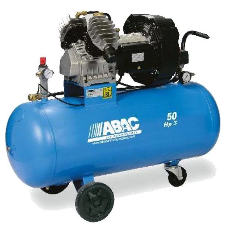 Compresseur 50 litres ABAC, compresseur mobile et compact au performance supérieur, conçu pour un usage intensif. Compresseur bi-cylindres en V de 3 chevaux ,idéal pour les outils pneumatiques, ou pour les professionnels du bâtiment.