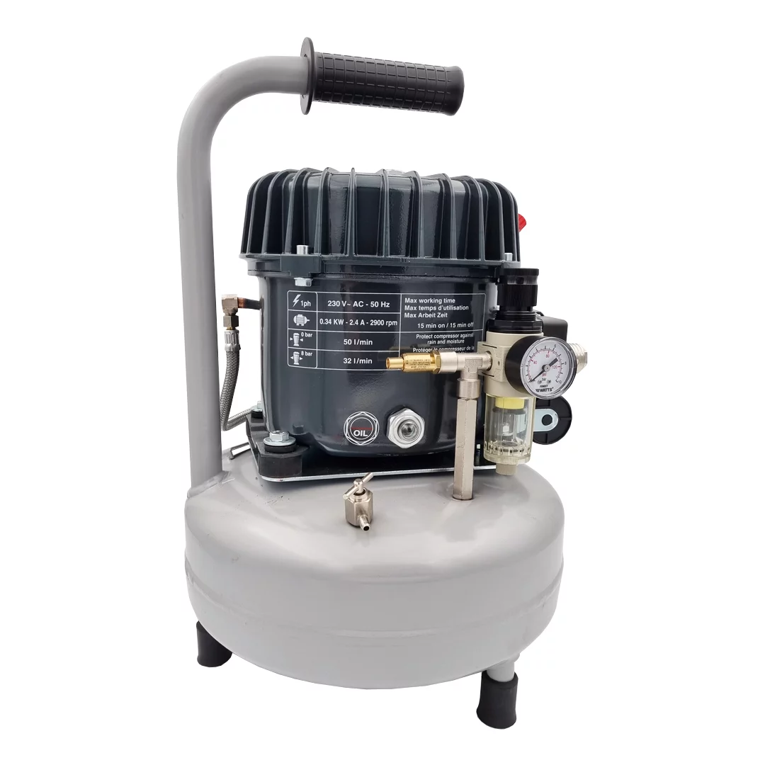 Ce modèle mono-étagé, équipé de la tête SILAIR50, assure un débit d’air constant de 3 m³/h (50 litres/min) pour vos applications. Sa vitesse de rotation de 2850 tr/min et son réservoir de 15 litres en font un appareil pratique et fiable.
