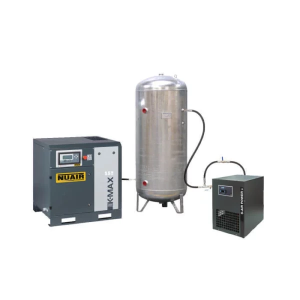 Le compresseur d’air à vis avec sécheur 500L NUAIR K-MAX 5.5/10/500VG/ES est équipé d’un sécheur performant, offrant une solution complète pour vos besoins en air comprimé. Ce sécheur intégré élimine efficacement l’humidité, garantissant ainsi un air sec et pur pour vos outils pneumatiques et équipements industriels.
