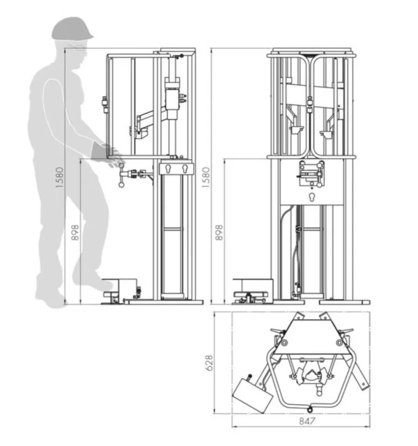Il offre une pression maximale de 8 bar et une course de cylindre de 330 mm, idéale pour diverses applications.
