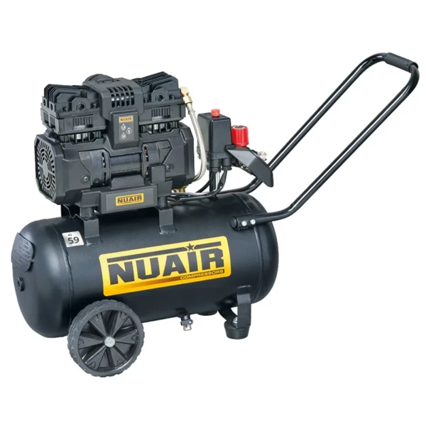 Compresseur sans huile, ne nécessitant aucune maintenance et respecte l’environnement. Il est équipé d’une grande poignée facilitant ainsi sont transport. Par ailleurs, le compresseur dispose d’un grand manomètre pour une lecture simple ainsi que de grandes roues pour assurer la stabilité et faciliter encore le transport.