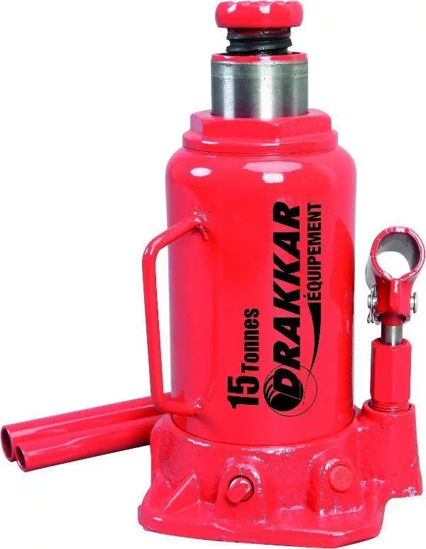 Cric bouteille hydraulique base soudée DRAKKAR avec un corps en fonte, une construction robuste et une valve de sécurité contre les surcharges.