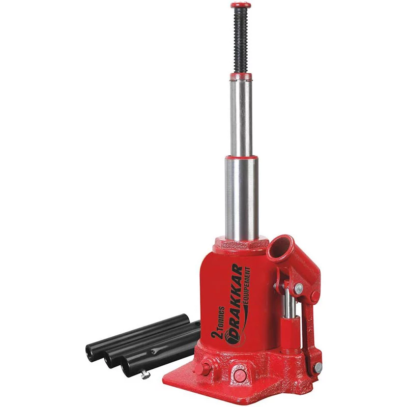 Cric bouteille hydraulique télescopique DRAKKAR 2 tonnes, compact et rapide + descente lente pour plus de sécurité.
