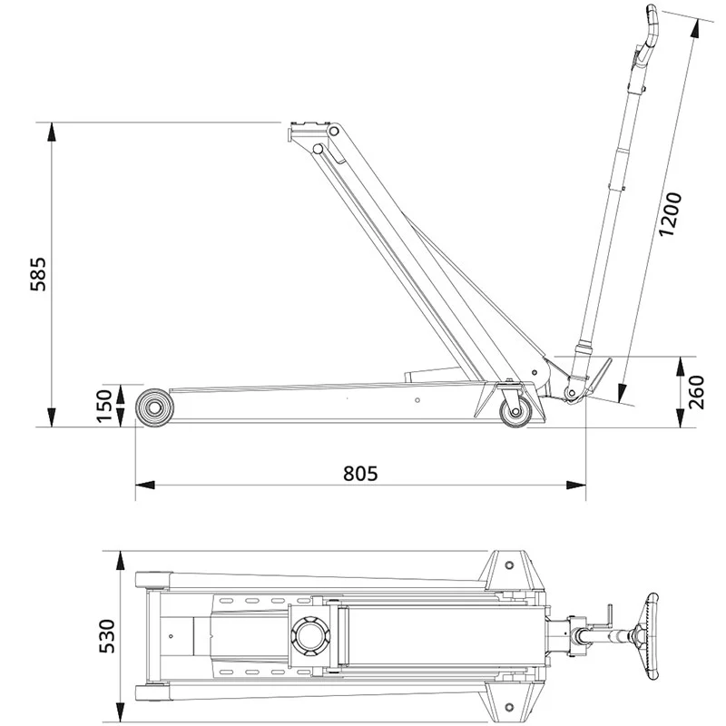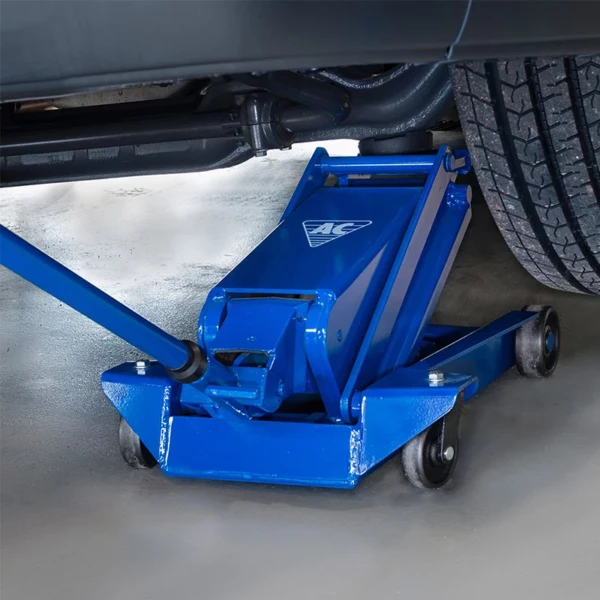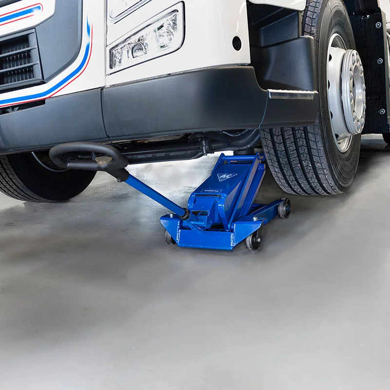 Cric rouleur 12 tonnes AC pour véhicules lourds. Ce cric bas avec un cadre large et robuste en acier est équipé d’une pédale de levage rapide et d’un dispositif d’homme mort.