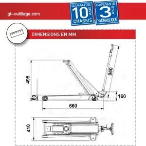 Cric rouleur 2 tonnes, extra plat et léger. Hauteur minimum de 80 mm Hauteur de levage maxi 495 mm.