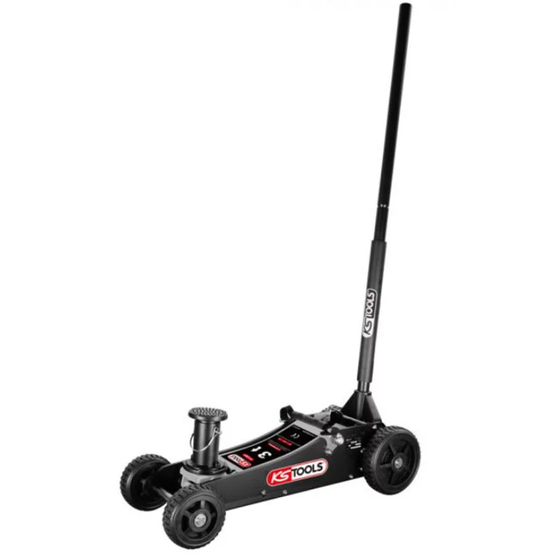 Le cric rouleur hydraulique tout terrain 3 tonnes de KSTOOLS® est un outil robuste et polyvalent. Conçu pour lever facilement et en toute sécurité des véhicules lourds dans des conditions difficiles. Parfait pour les garages professionnels, les ateliers mécaniques, et les utilisateurs exigeants. Ce cric est idéal pour une utilisation sur une variété de surfaces, y compris les terrains accidentés. Cric rouleur tout terrain 3 tonnes KSTOOLS