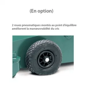 2 x Roues pneumatiques montées au point d’équilibre améliorant la manœuvrabilité du cric